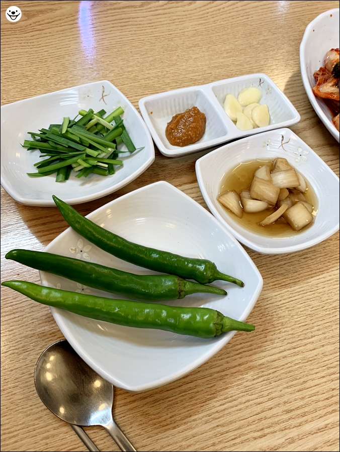 사장님께 주문을 할 때쯤 이렇게 반찬들을 내어주십니다. 이모님이 손이 참 빠르십니다.