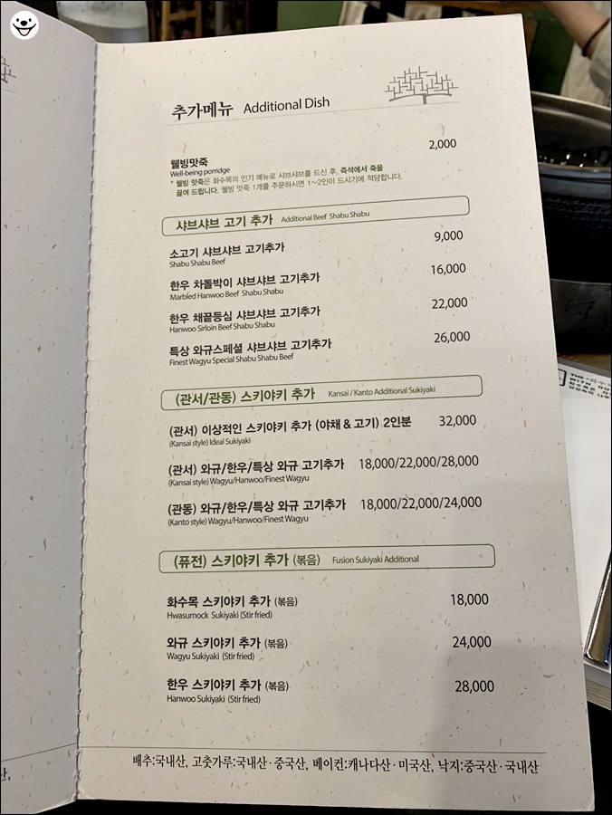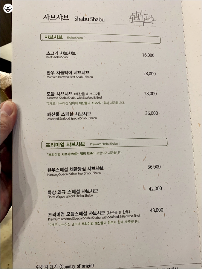 저렴하지는 않아요~ 저희는 쇠고기 샤브샤브 2인분을 주문했습니다.