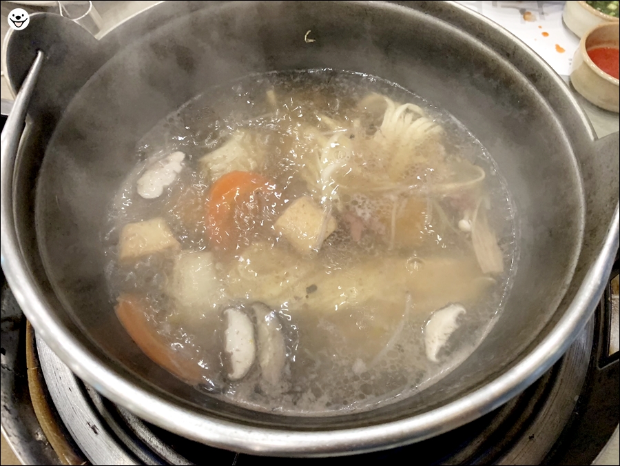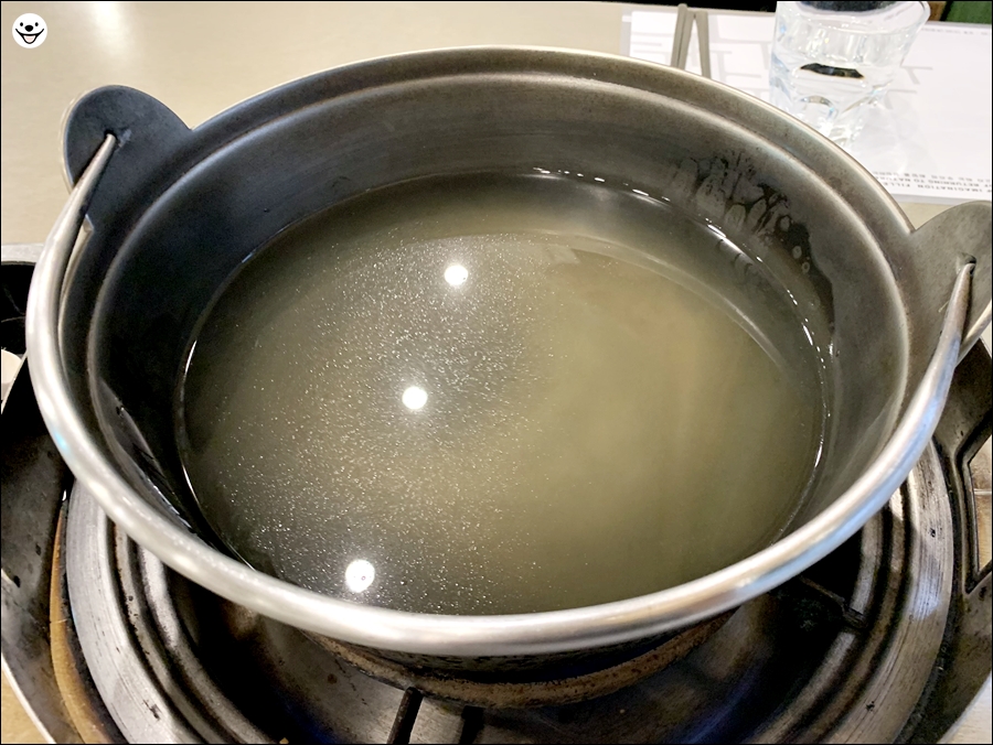 평소에 먹어 오던 샤브샤브의 육수보다 훨씬 색이 옅습니다.