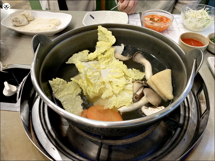 샤브샤브를 다 먹고 끓여먹을 칼국수와 만두랍니다.