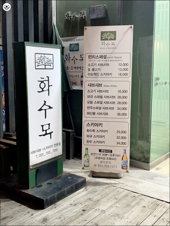 사실 살짝 더웠지만 뜨끈한 국물이 당기신다는 그분을 모시고 서현에서 나름 이름이 있는 화수목을 들렀습니다.