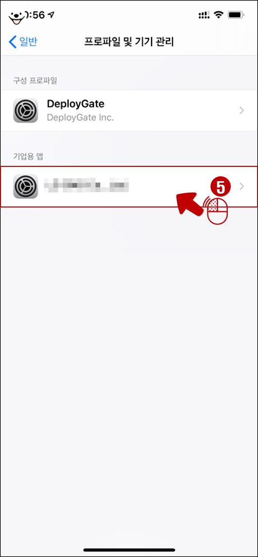 5. 프로파일 및 기기 관리 > 설치할 기업용 앱을 탭합니다.