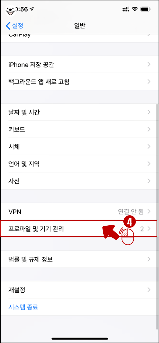 4. 프로파일 및 기기 관리를 탭합니다