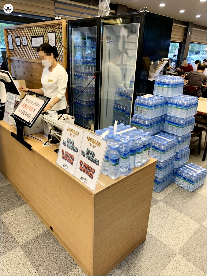 그리고 저 뒤에 많은 물들은 자리로 이동할 때 1인당 1개씩 주십니다.