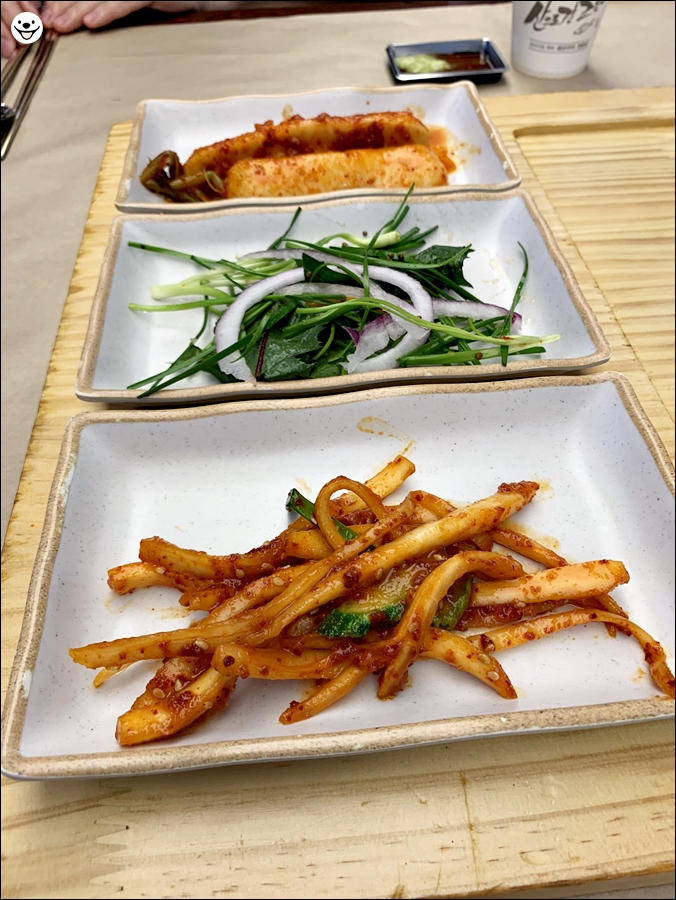 잠시 후 반찬을 주십니다. 도라지 참나물 총각김치입니다.