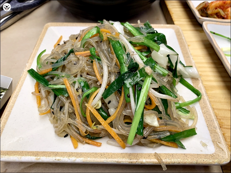 잡채를 가져오니 먹을 준비가 된 것 같습니다.