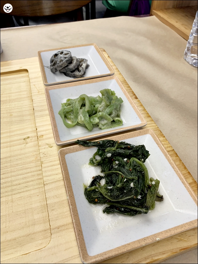 반찬은 나무 받침에 올려서 주십니다. 깔끔합니다.