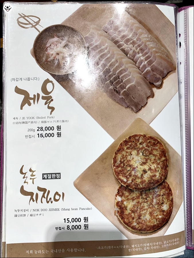 제육도 28,000원이고 녹두 지짐이도 두 장에 15,000원입니다.