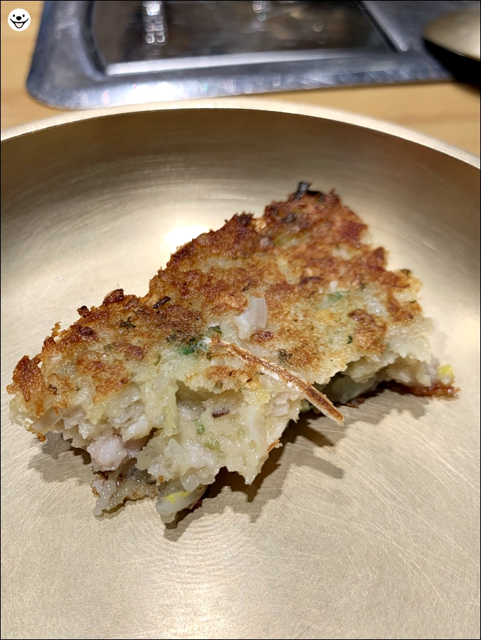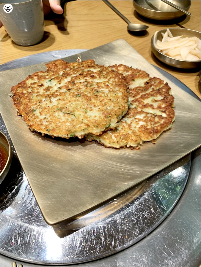 고소한 돼지기름(?)에 잘 구워진 녹두전의 끝은 바삭바삭하고 속은 부드럽습니다.
