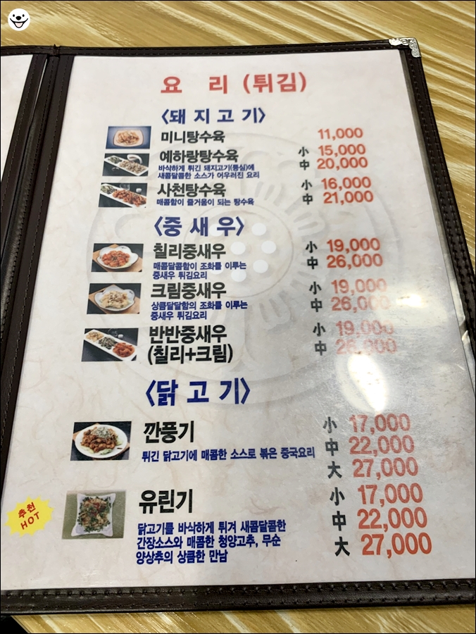 가격은 일반 중식당보다 약간 저렴합니다.