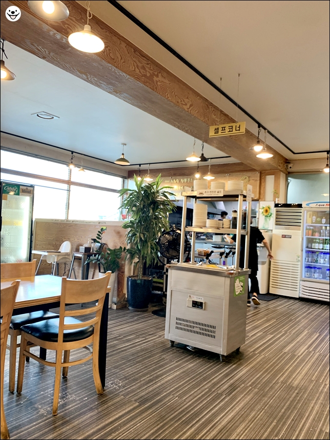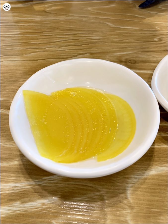 단무지와 양파, 김치 등의 반찬은 셀프 코너에서 리필해서 먹을 수 있습니다.