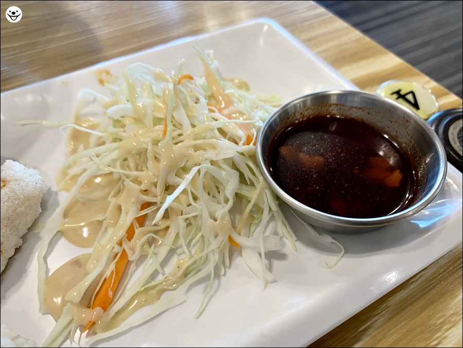 양배추 샐러드랑 처음 보는 소스입니다.