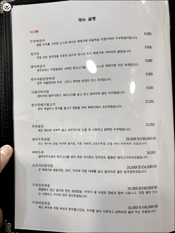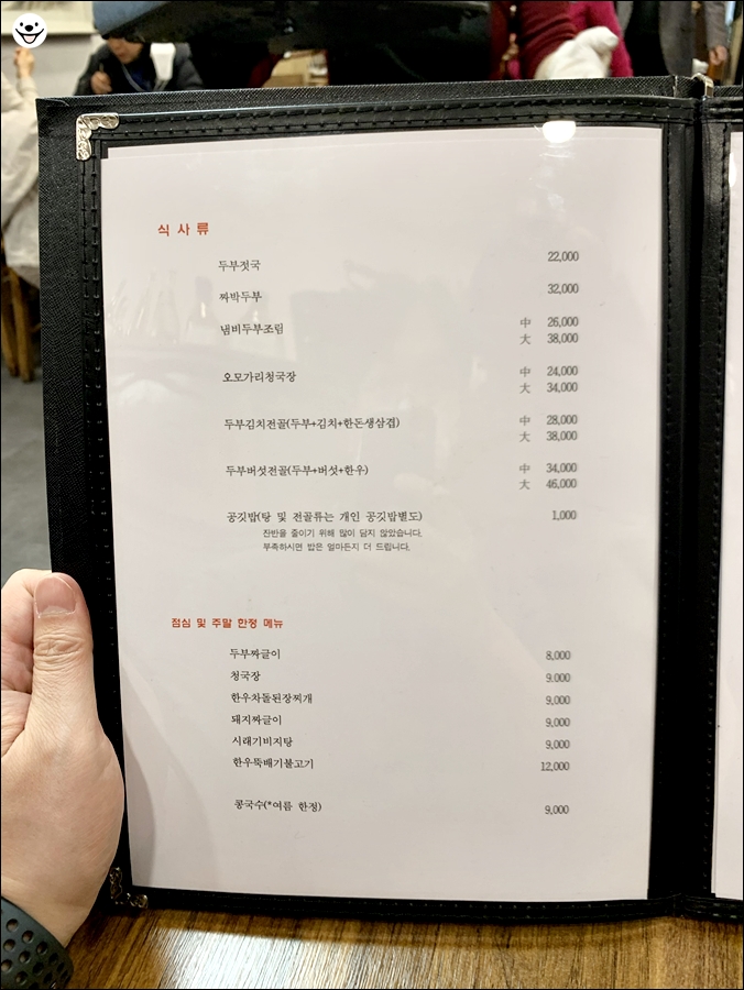 아무리 국산 콩이래도 두부버섯전골 중간 크기가 34,000원 입니다. 대는 46,000원 이라니~