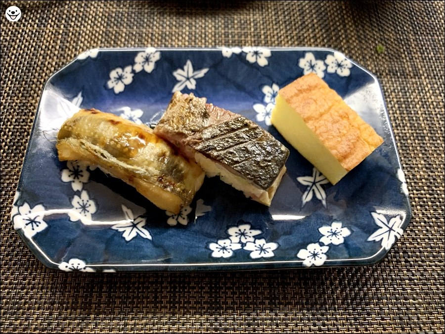 붕장어 고등어 초절인 스시인 시메사바 그리고 달달한 계란 카스테라입니다.