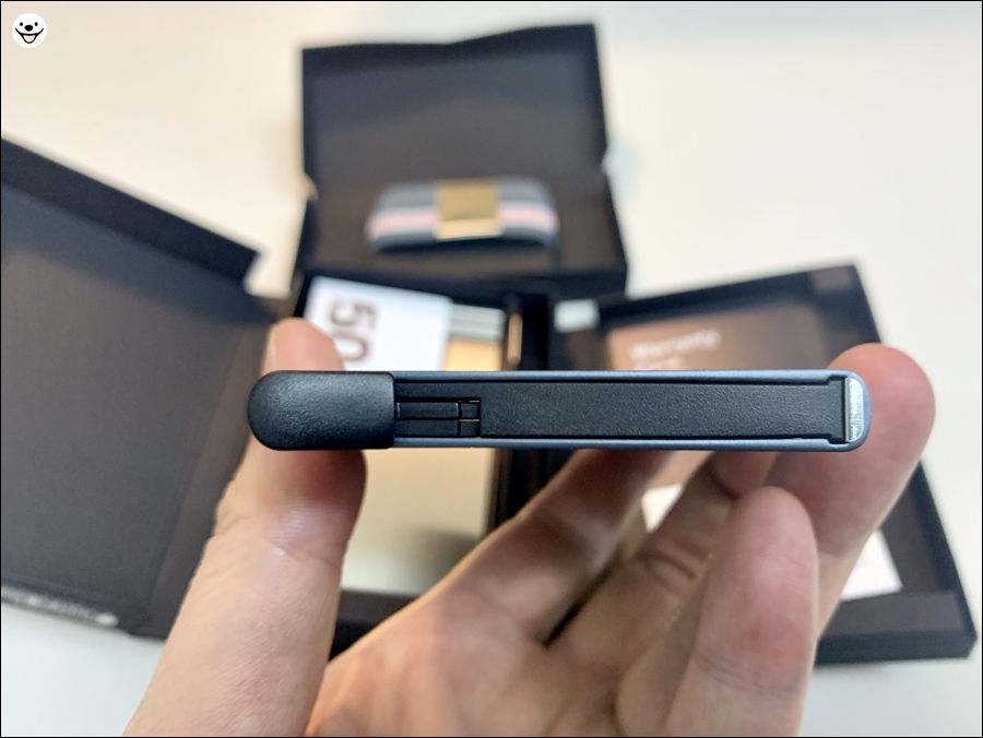 3. 일반 지갑 두깨의 반도 되지 않아 뒷 주머니가 아닌 앞 주머니에 넣어도 괜찮습니다.