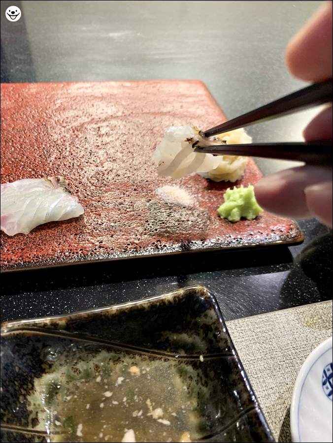 와사비를 살짝 올려 먹으면 맛있다고 추천해 주셨습니다.