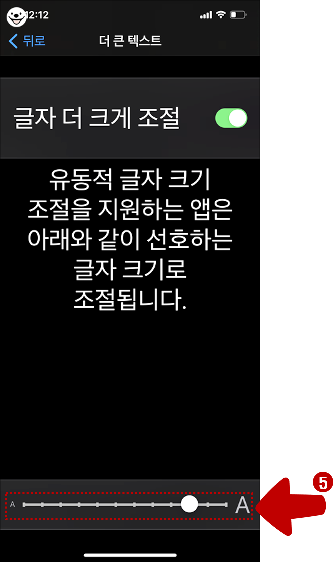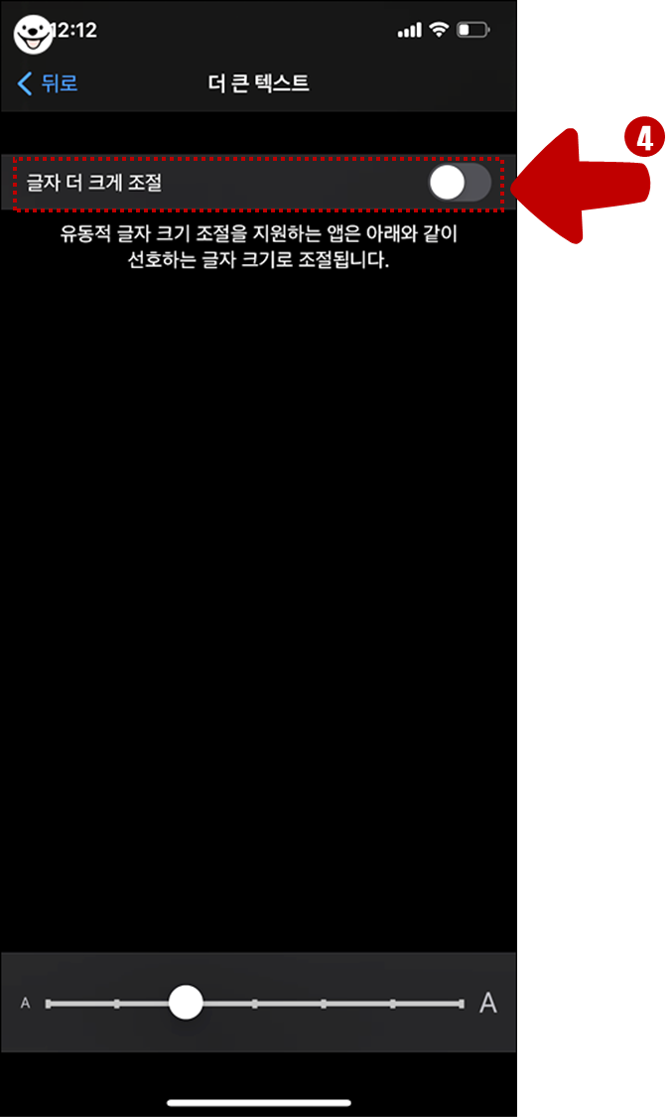 4. 글자 더 크게 조절을 활성화 합니다.
