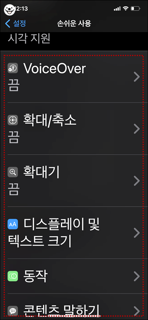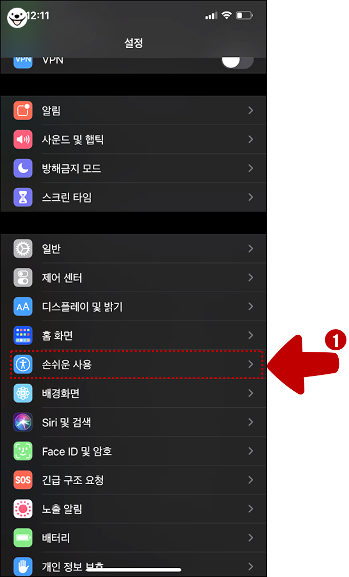 1. 손쉬운 사용을 탭 합니다.