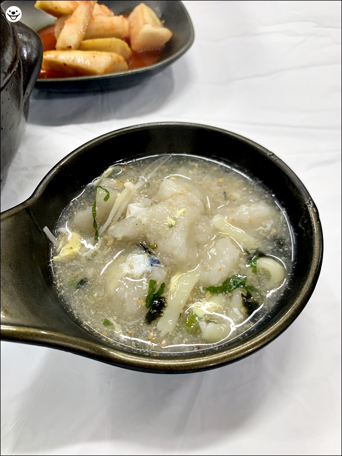 국물은 약간 죽 같습니다. 그래서 그런지 처음에 모르고 푹 떠서 먹으면 입천장 까질 수 있습니다.