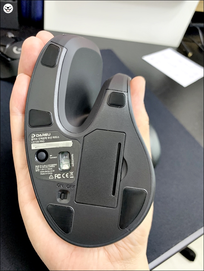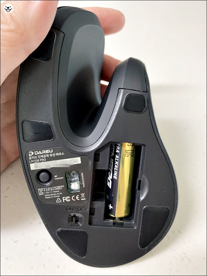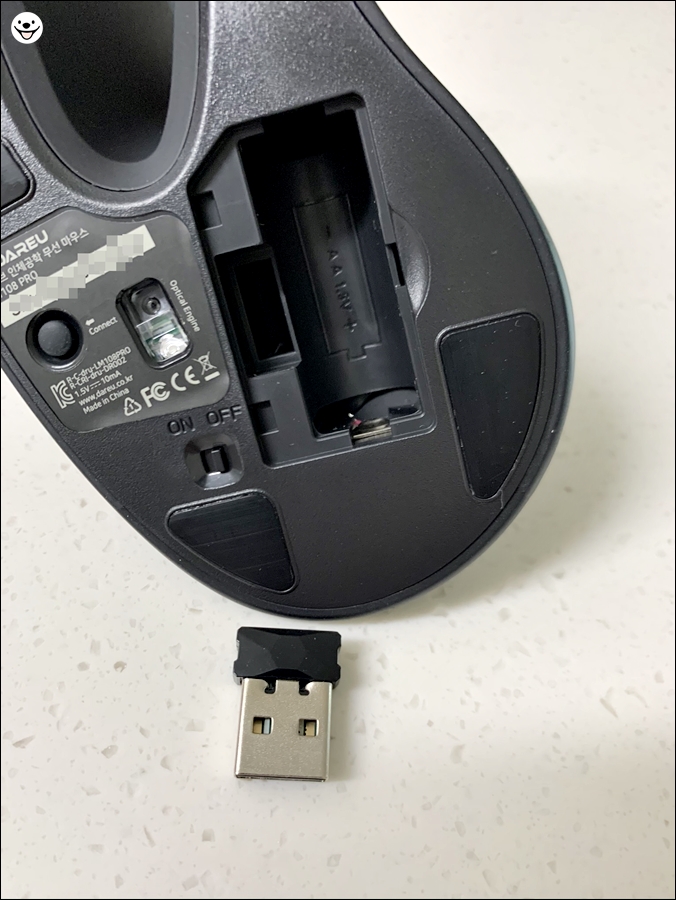 하단에는 건전지를 넣는 부분과 마우스 ON / OFF이 있습니다.