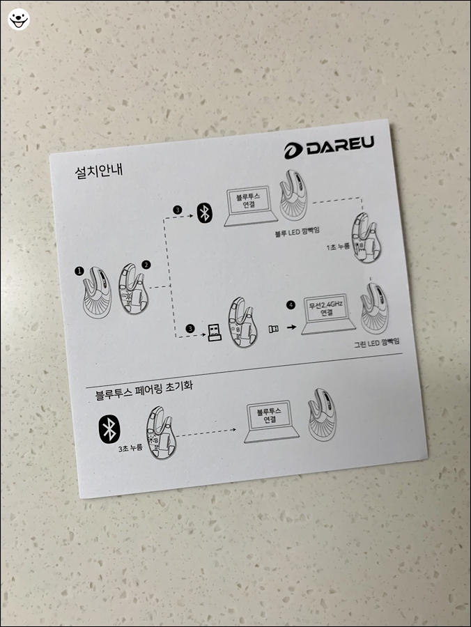 건전지를 넣고 3초를 누르면 블루투스 페어링 모드로 전환됩니다.