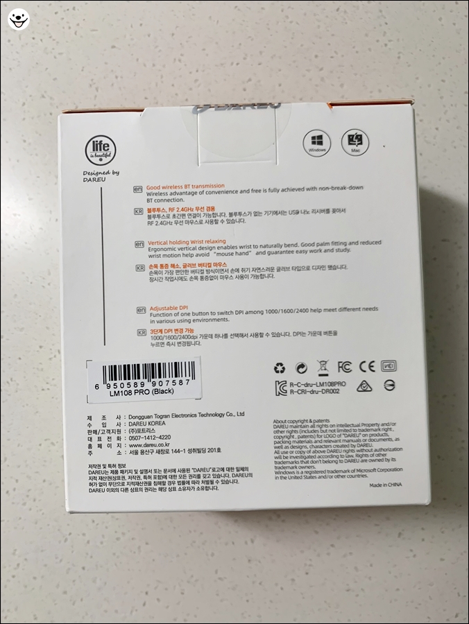 [DAREU] 다얼유 LM108 PRO 글러브 버티컬 마우스