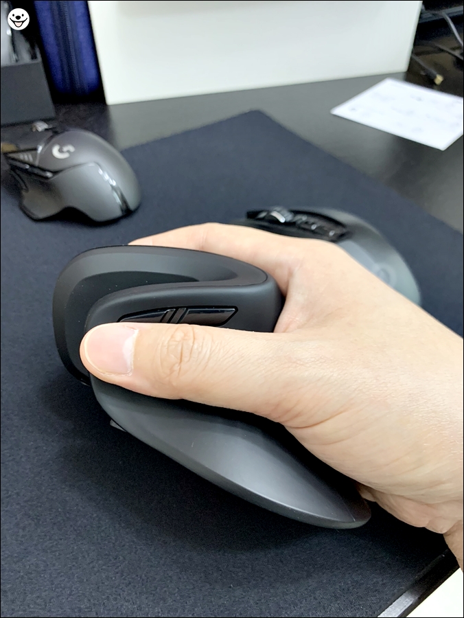 마우스를 편하게 잡게 되면 대부분의 손가락이 마우스의 작동 범위를 넘어간다고 보시면 됩니다.