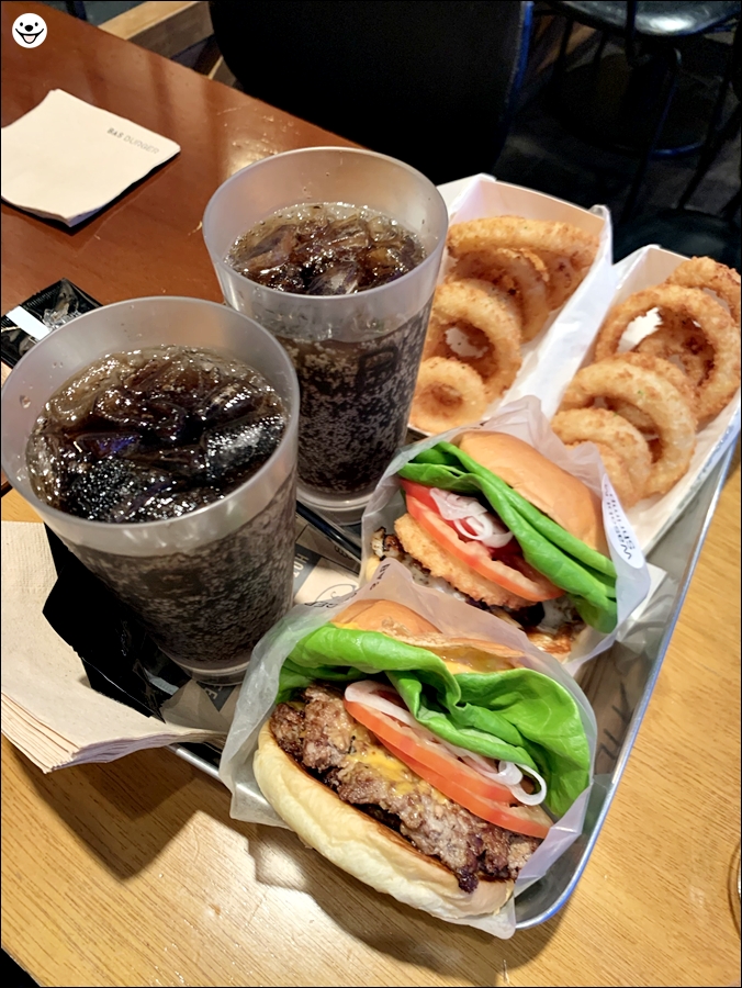 음료는 밀크셰이크로 변경했고 감자칩도 어니언 링으로 변경했습니다.