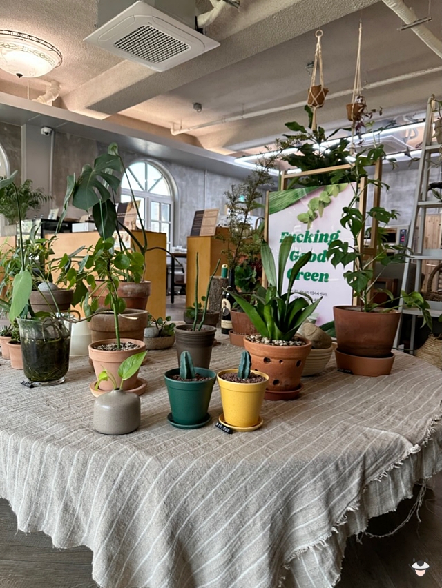 빵을 기다리는 동안 중간에 화초를 구경합니다.
