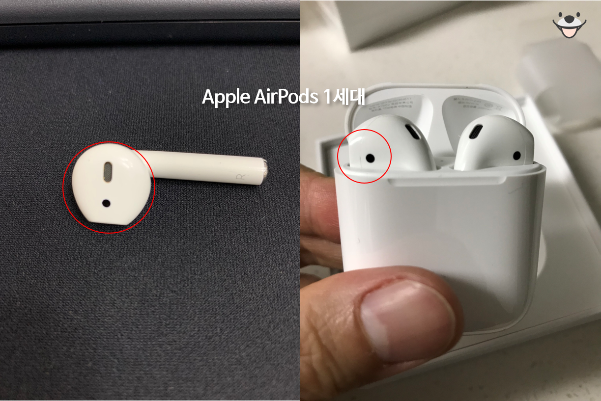 아래 분해된 에어팟 1세대와 비교해봤습니다.