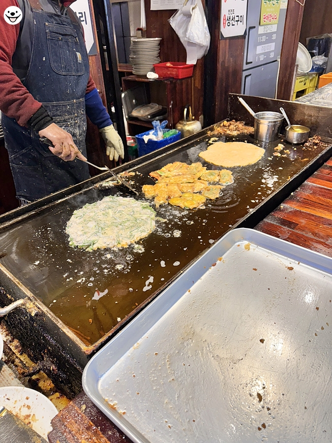 전집이 대 부분 그렇겠지만 이곳은 시장 한가운데 있어서 이렇게 바로바로 전을 구워주십니다.