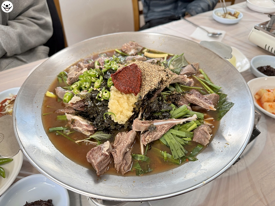 주문한 염소탕이 나왔습니다. 4인분을 주문했습니다.