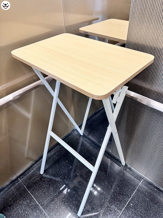 엘리베이터 안에는 음식을 들고 이동하다 쏟을 수 있어서 이런 테이블도 있습니다.