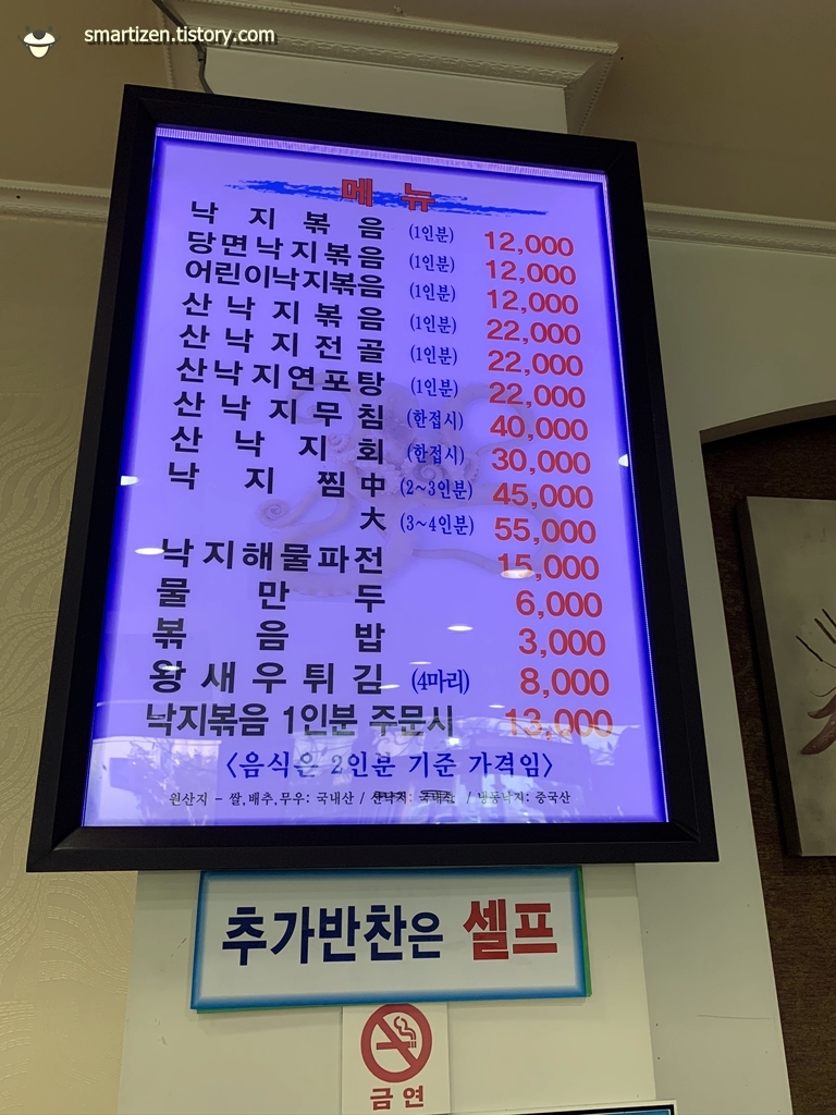 사실 예가 낙지마을이 예전에는 신발 벗고 들어가서 방석 깔고 앉는 좌식이었습니다.