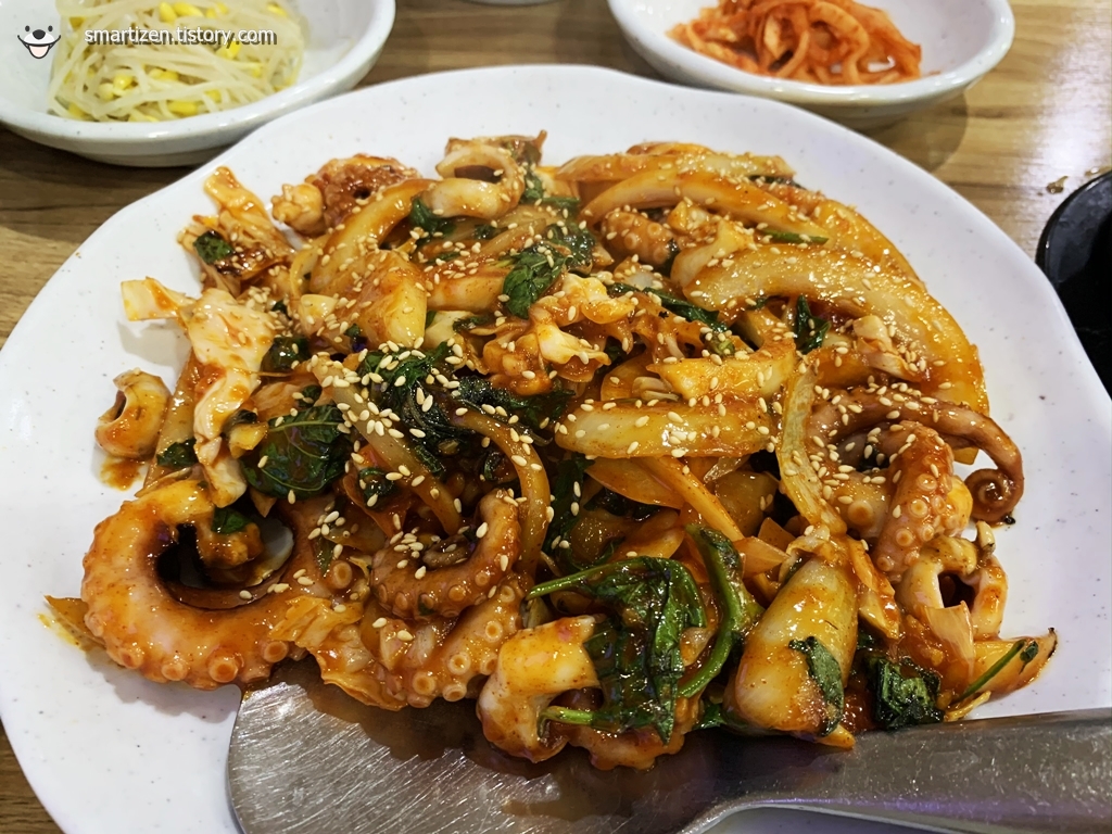 큰 낙지를 질기지 않게 조리하는 것이 포인트인 것 같습니다.