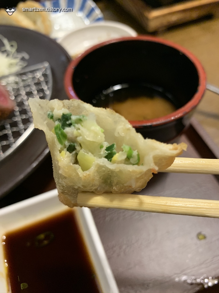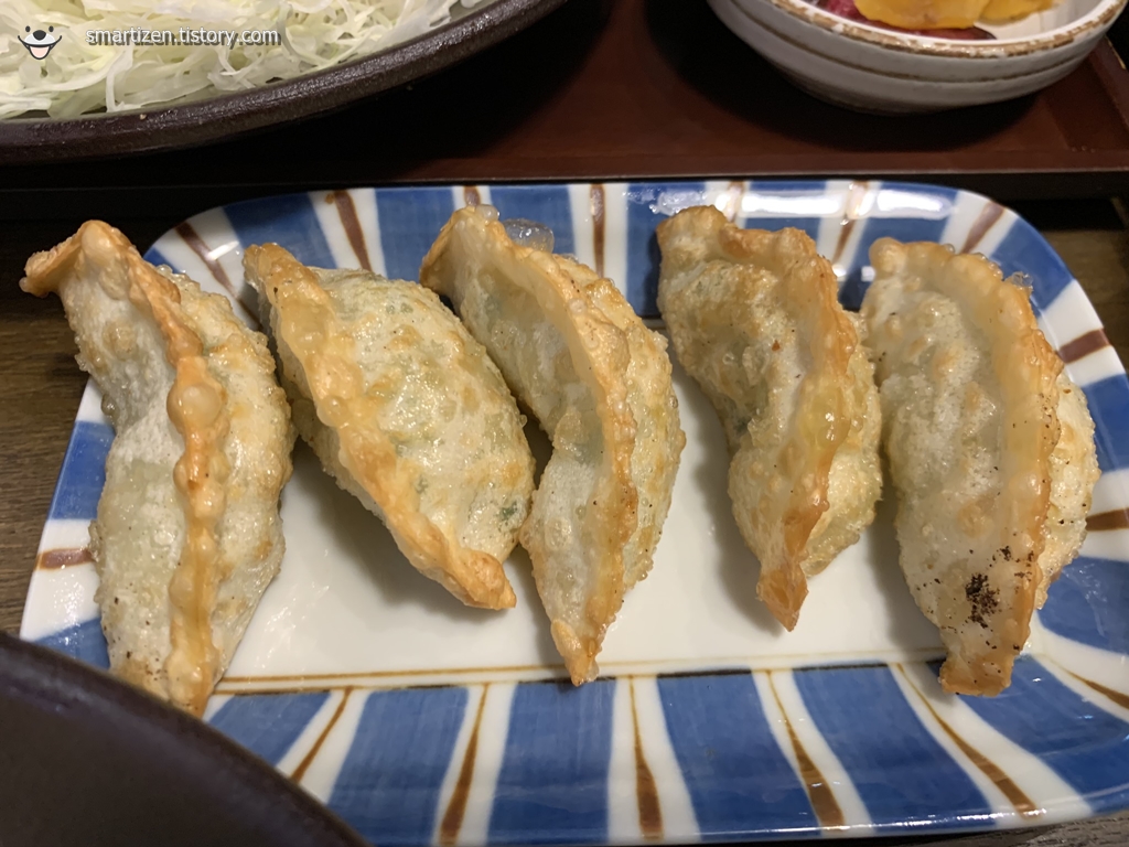 일식 교자랑은 조금 다르네요 튀긴 만두입니다.