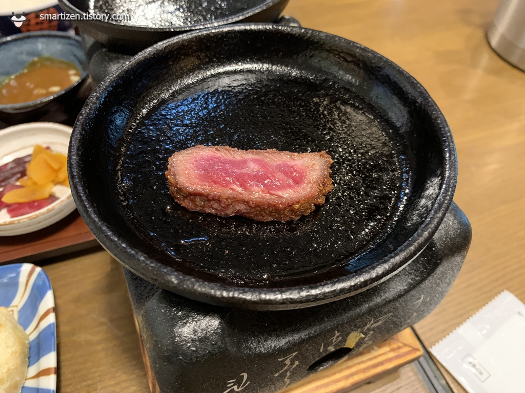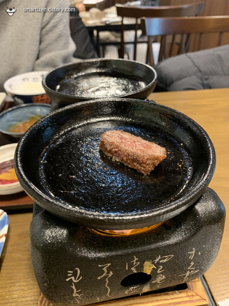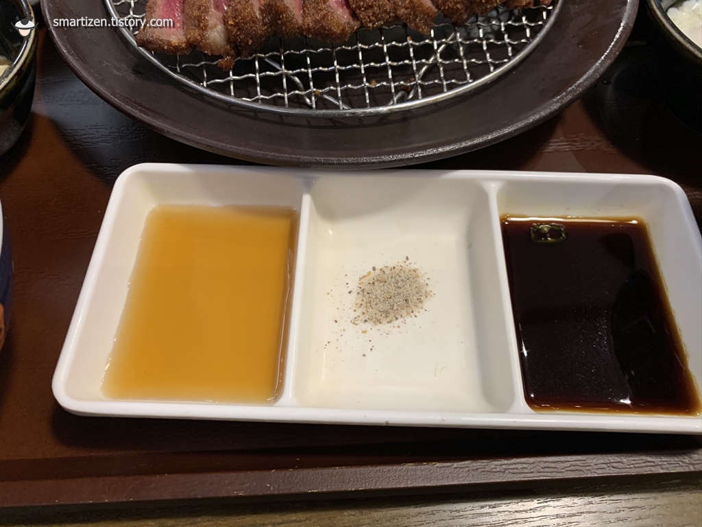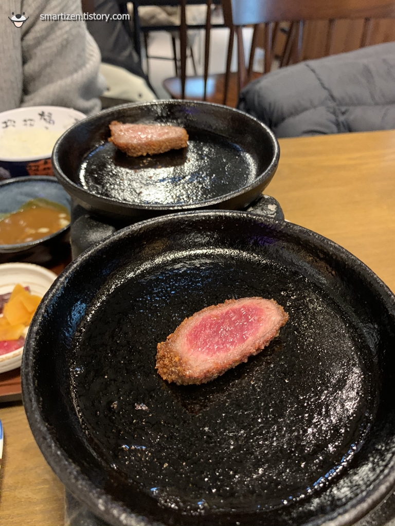 소고기 너비튀김 정식 + 맛계란 1개와 그냥 소고기 너비튀김 정식을 시켜봅니다.