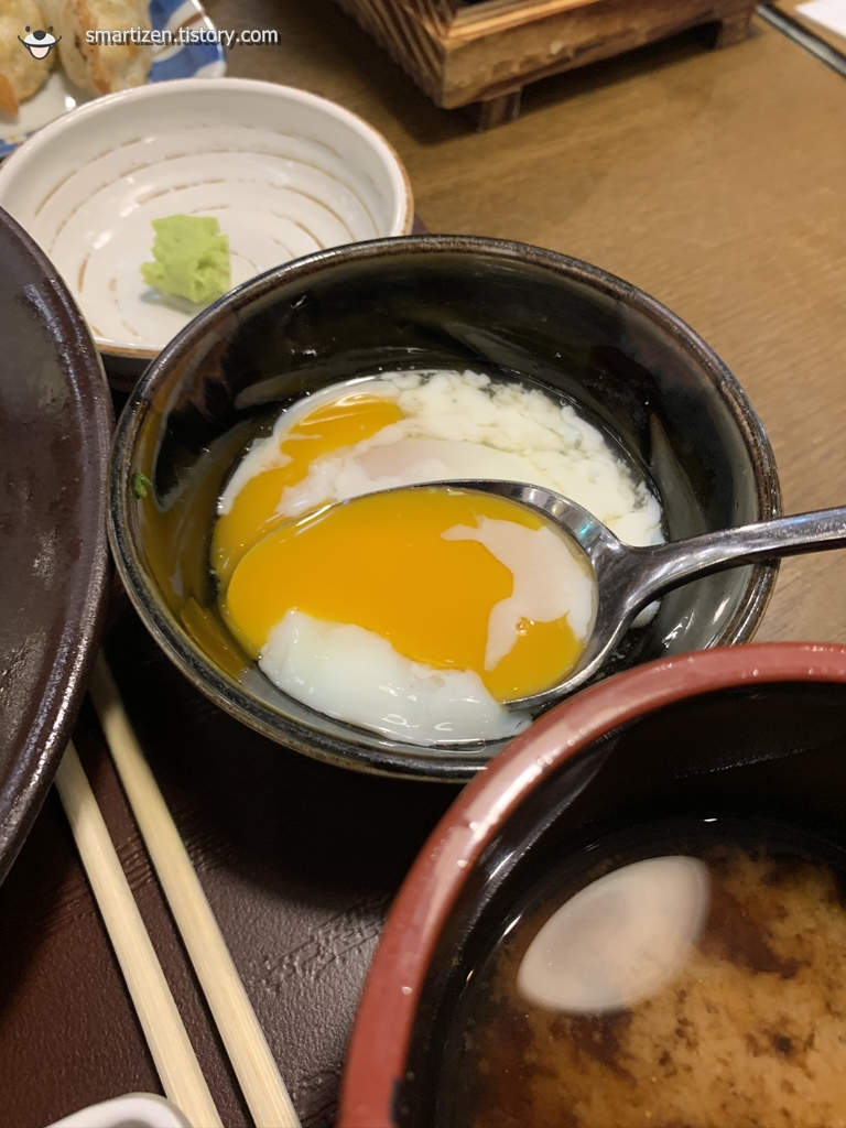 짭짤한 소스에 반숙 계란을 넣어주셨습니다.