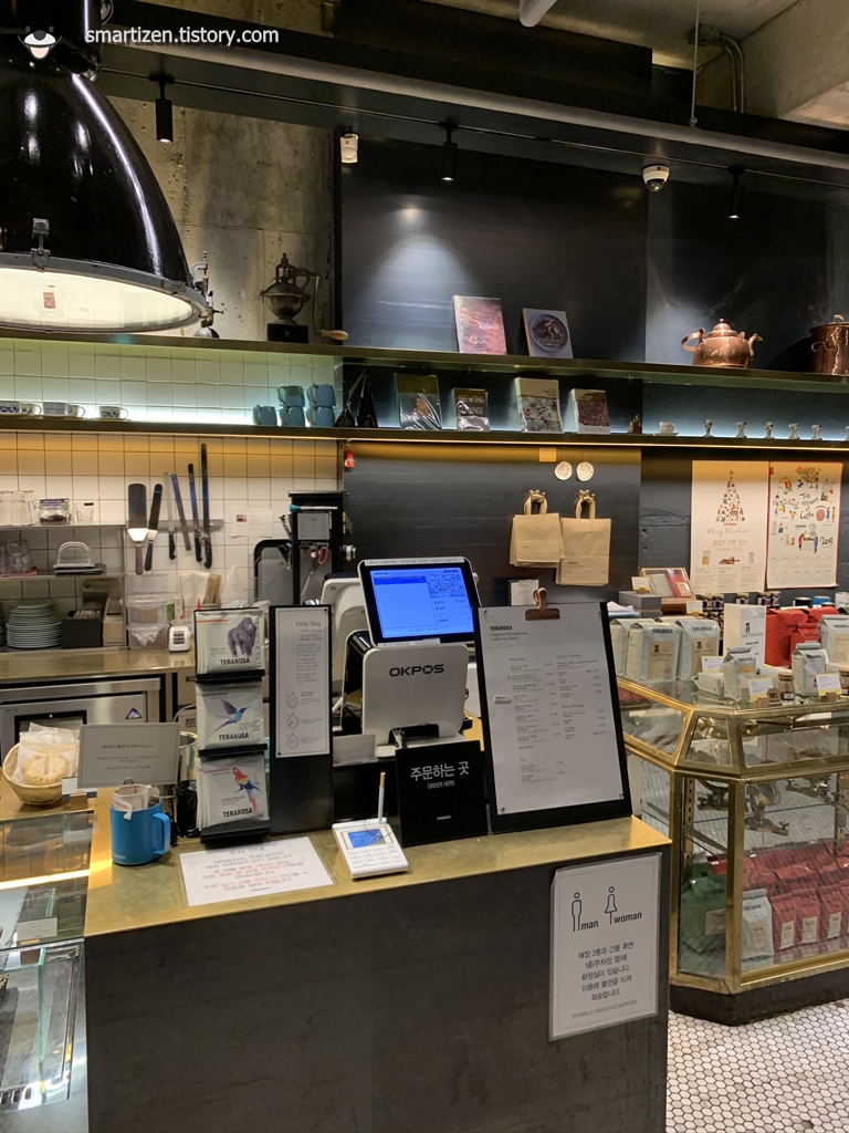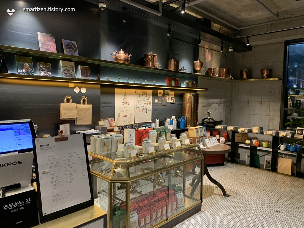 테라로사 이태원점과 비슷하게 원두와 텀블러 등을 팔고 있습니다.