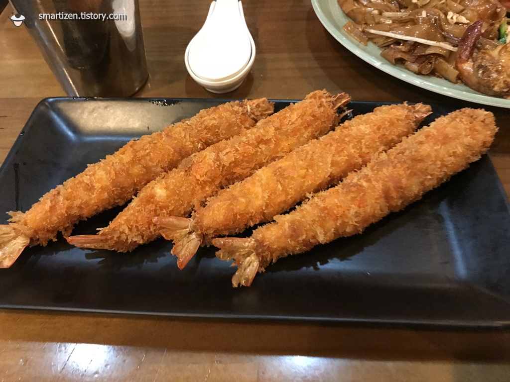 조금 큰 것 같으나~ 머리까지 같이 튀긴 거라 머리와 꼬리를 빼면 일반적인 새우 크기입니다.