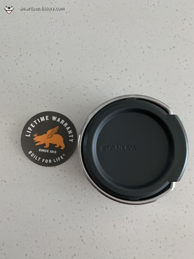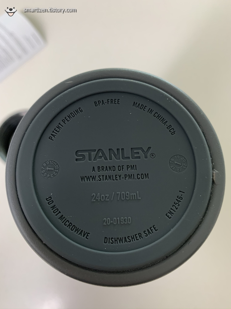 뚜껑의 스티커를 떼면 음각으로 STANLEY라고 쓰여있습니다.