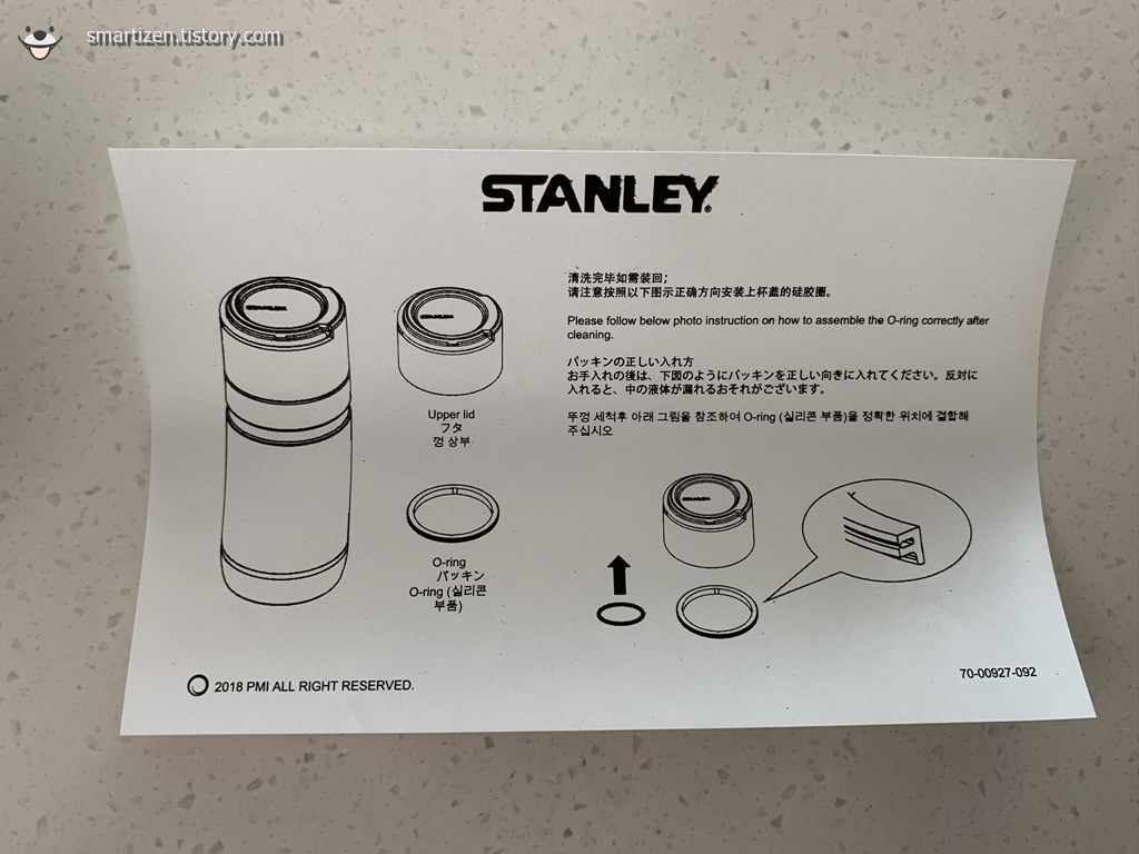 텀블러 뚜껑을 열면 안쪽에 이런 설명서가 들어있습니다.