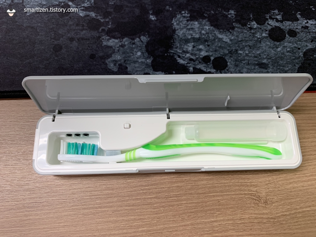 책상 속 어둠 속에 방치되던 칫솔의 자유를 위해 휴대용 칫솔 살균기를 하나 주문했습니다.