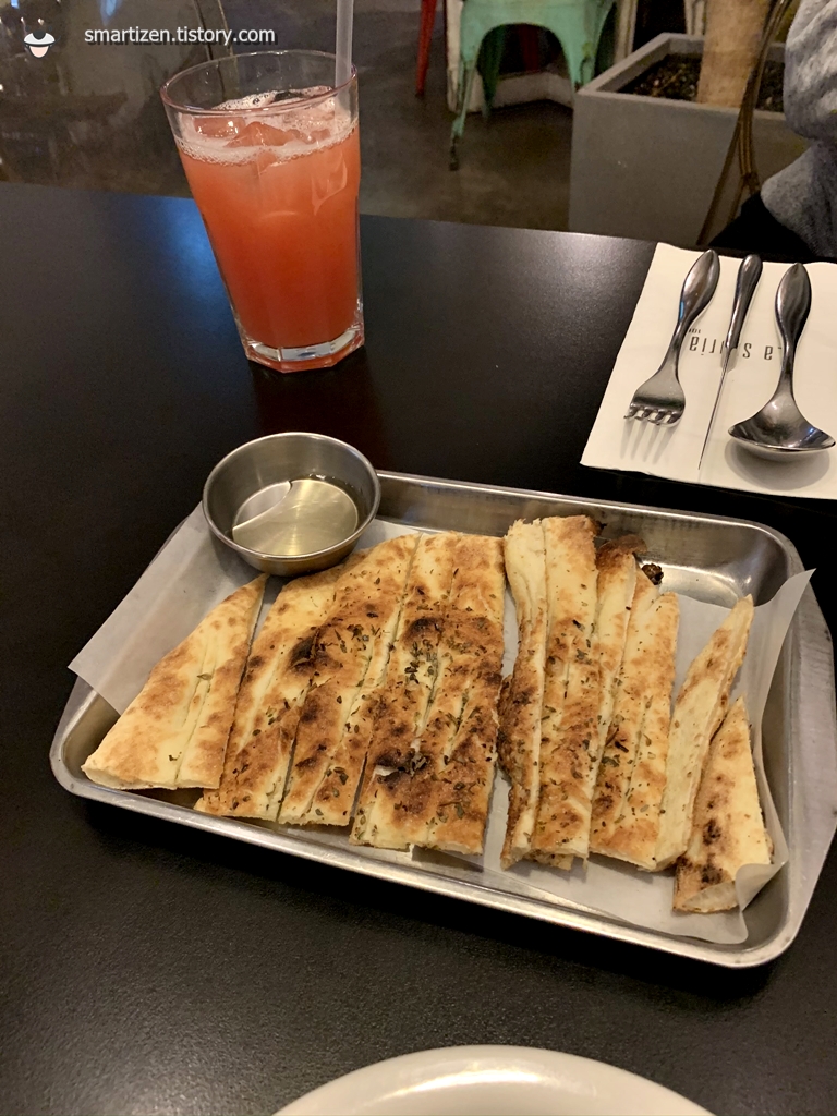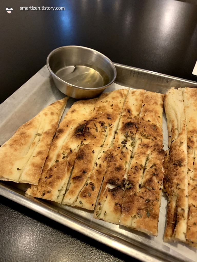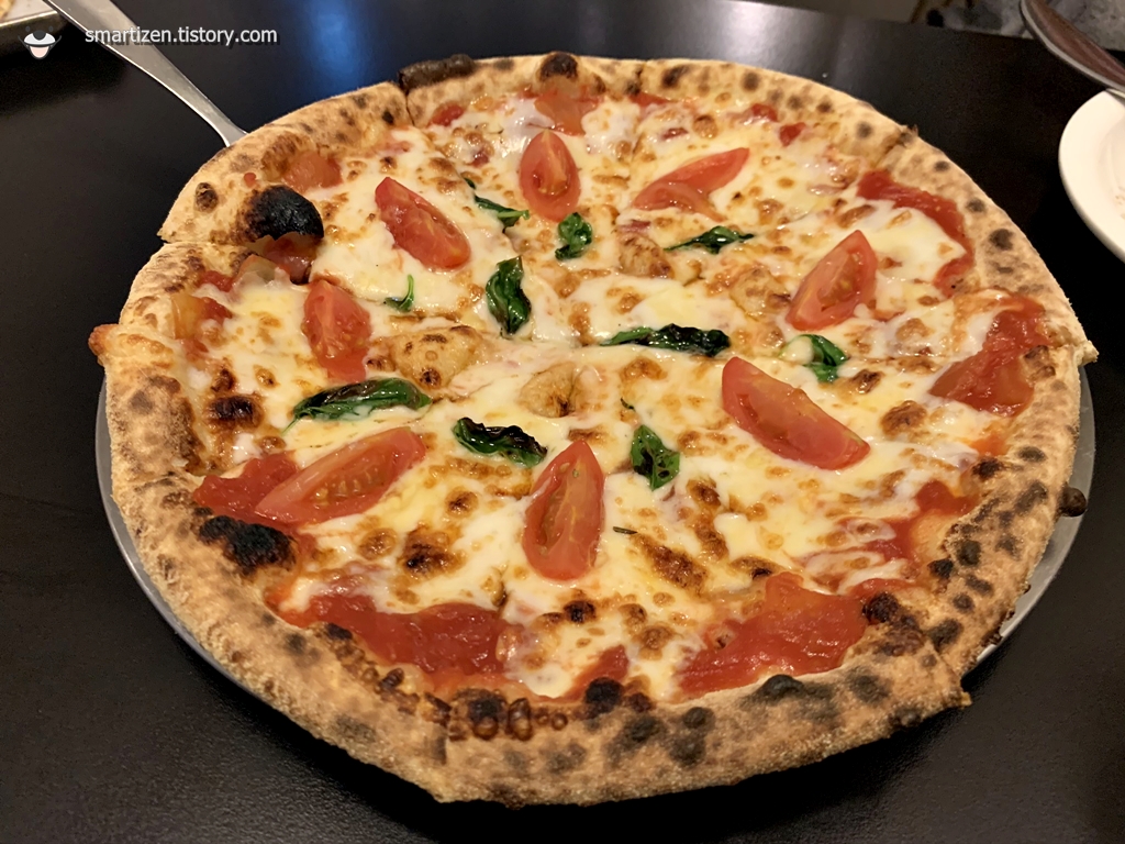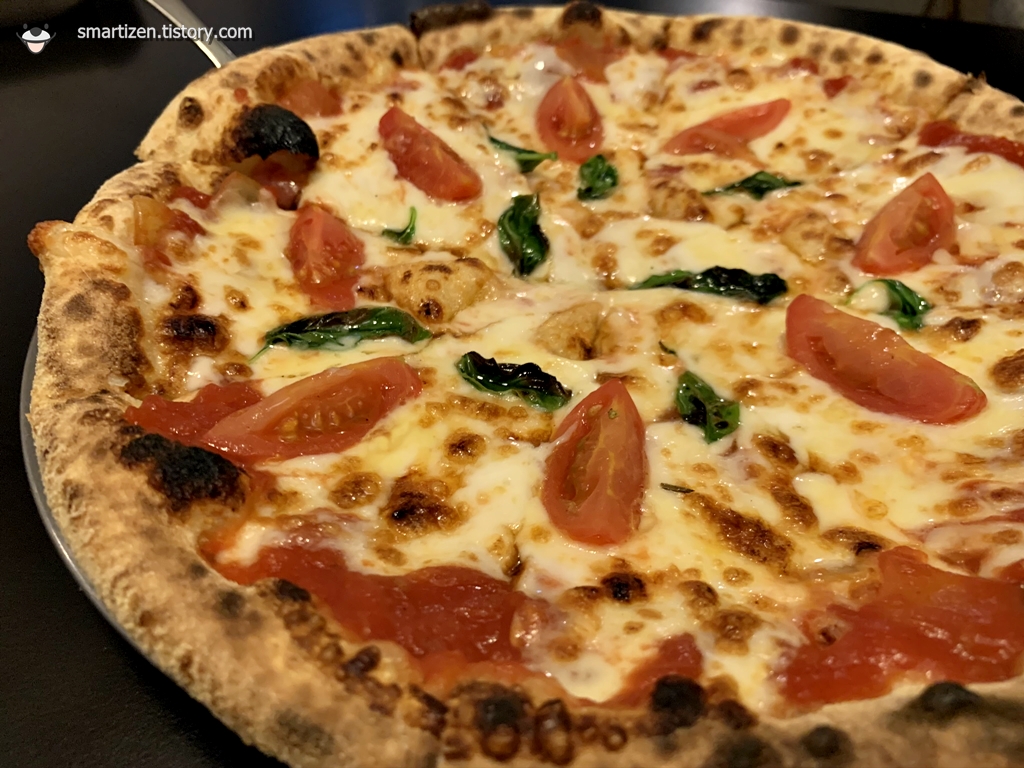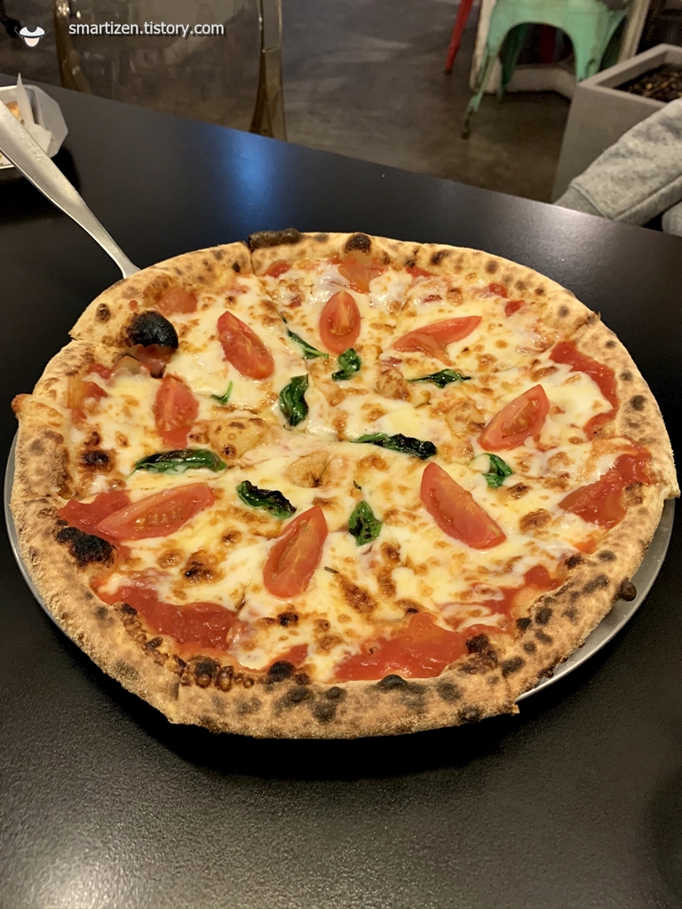 특이하게 피자 반죽을 화덕에 구운 낸 느낌입니다.