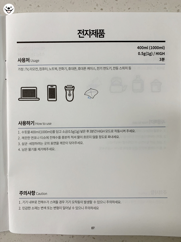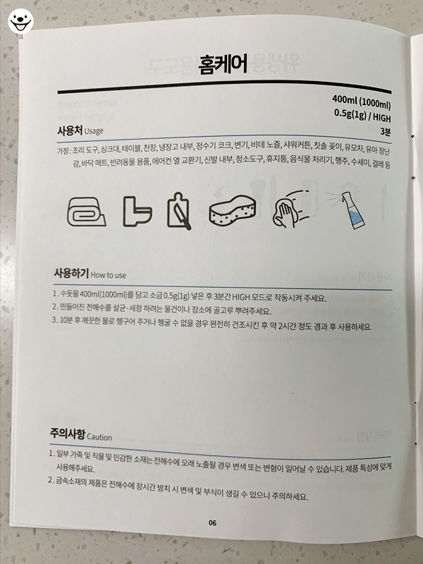 이젠 전해수로 살균하겠습니다.