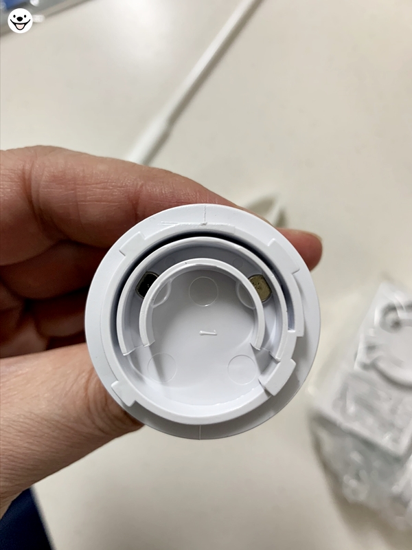 상단에는 파란색 LED 전구와 전극이 튀어나와 있습니다.