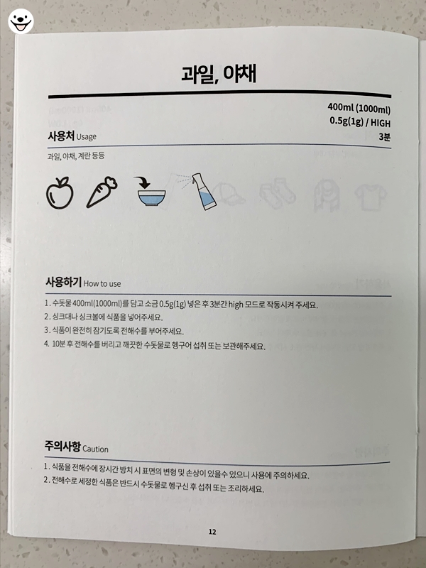 채소와 과일들을 세척할 때 좋습니다.