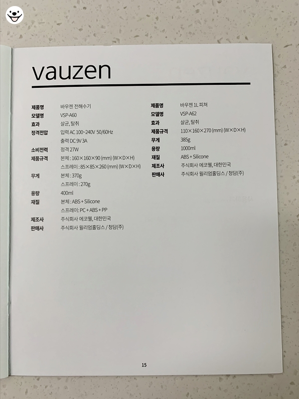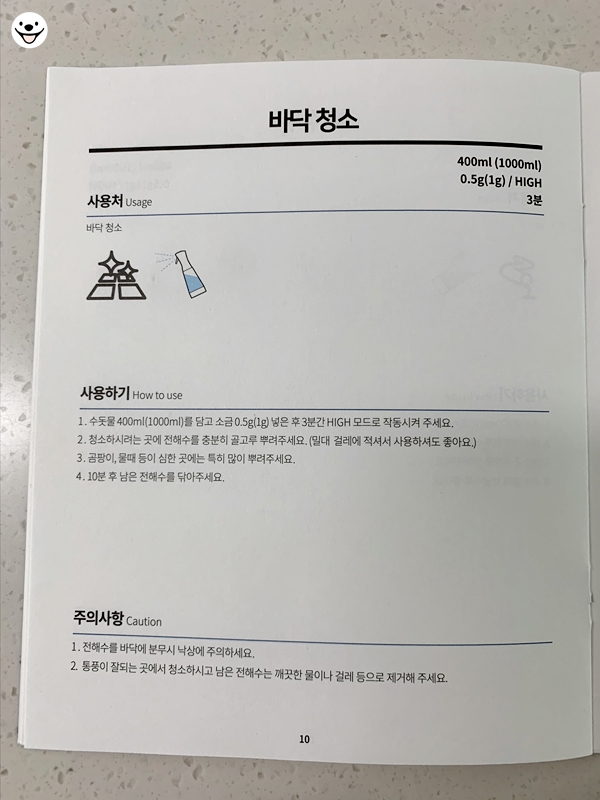바우젠 전해수기는 사용설명서와 레시피 북이 중요합니다.