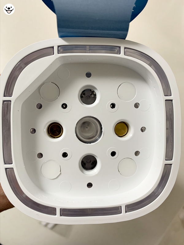 사용하면서 알게 되었는데요 스프레이 물통 하단 왼쪽 전극부는 뭔가에 그을린 것 같이 검게 변해 있었습니다.