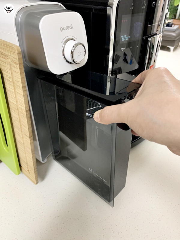 물통을 꼽으니 내부를 헹궈내기 시작합니다.